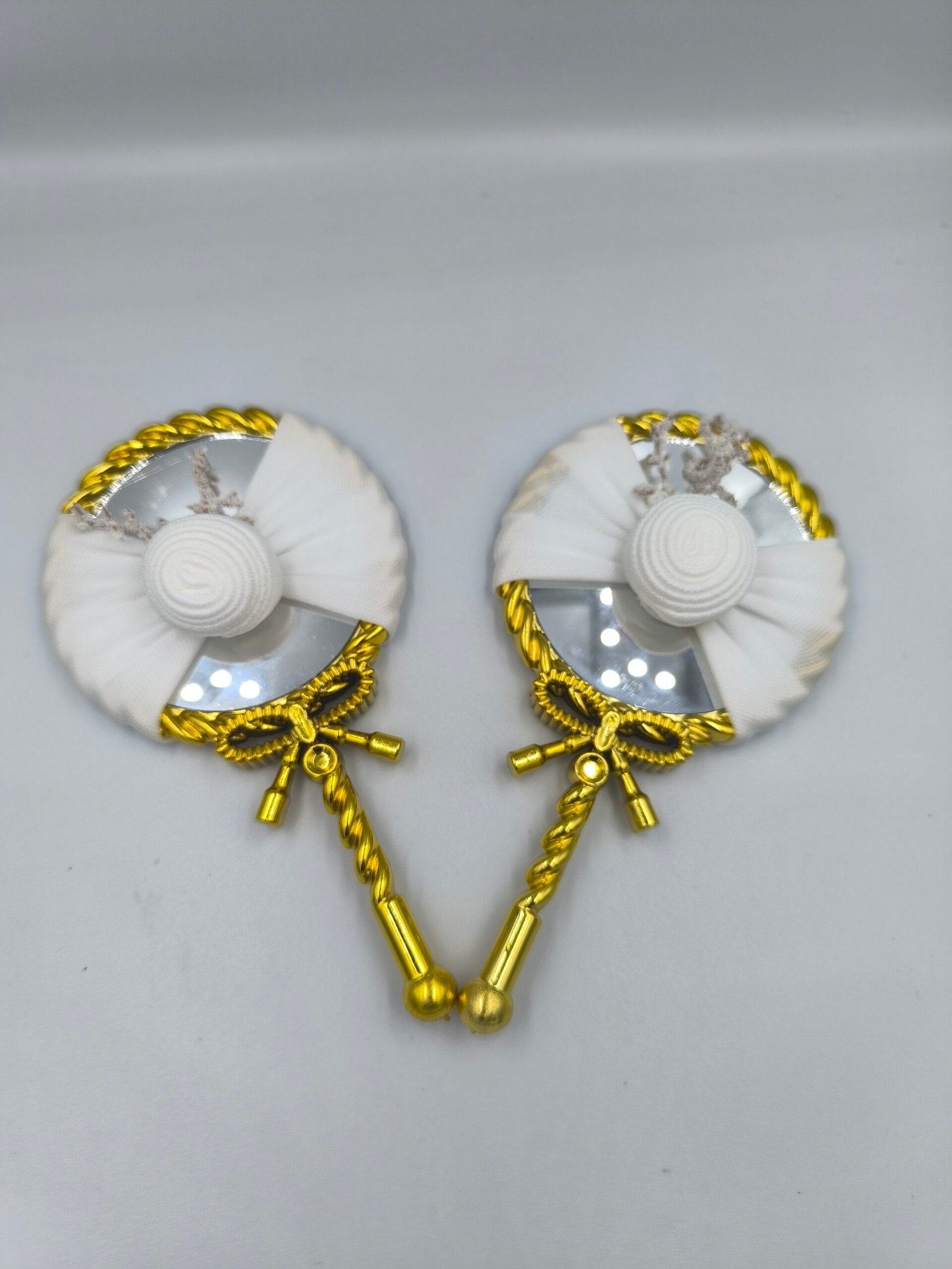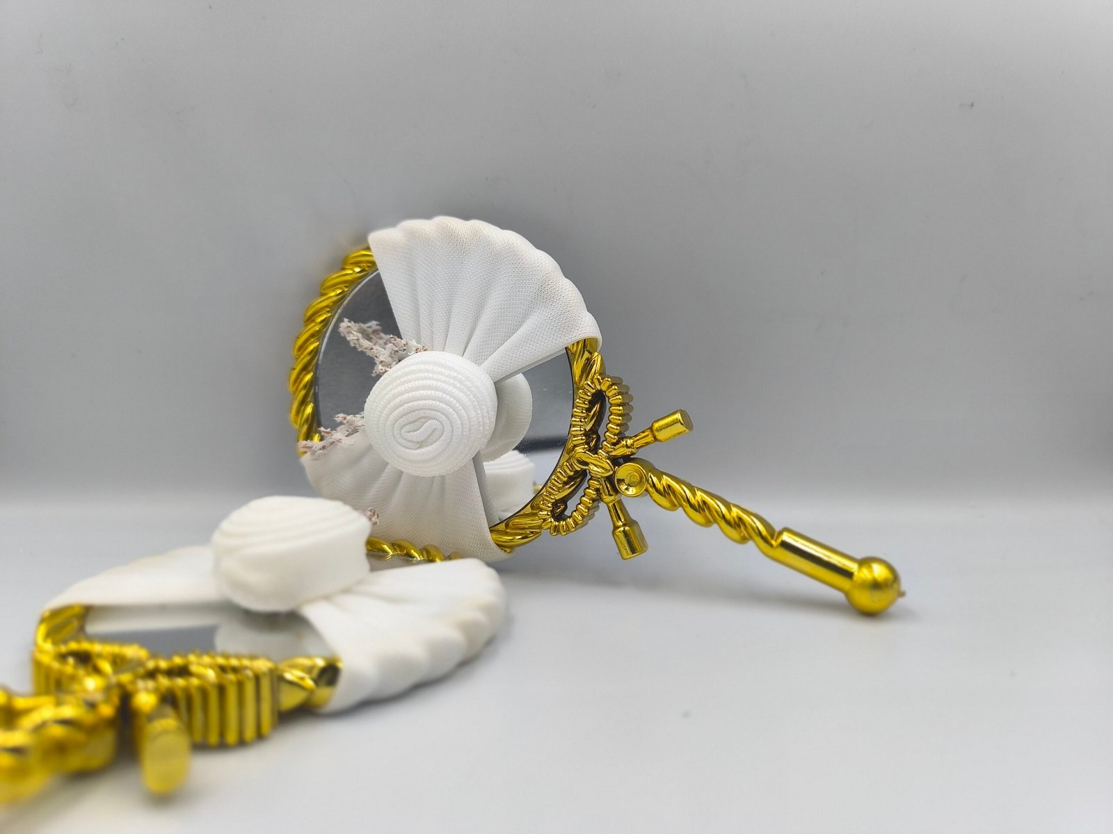 تم تصميم هذه المرايات باستخدام خامات عالية الجودة للحصول على مظهر فاخر يعبر عن التميز. تأتي بألوان فضية وذهبية خلابة تتناغم مع أي ديكور أو طابع للمناسبة. كل تفصيلة تعكس اهتماماً بأدق التفاصيل لضمان تقديم قطعة فريدة من نوعها.